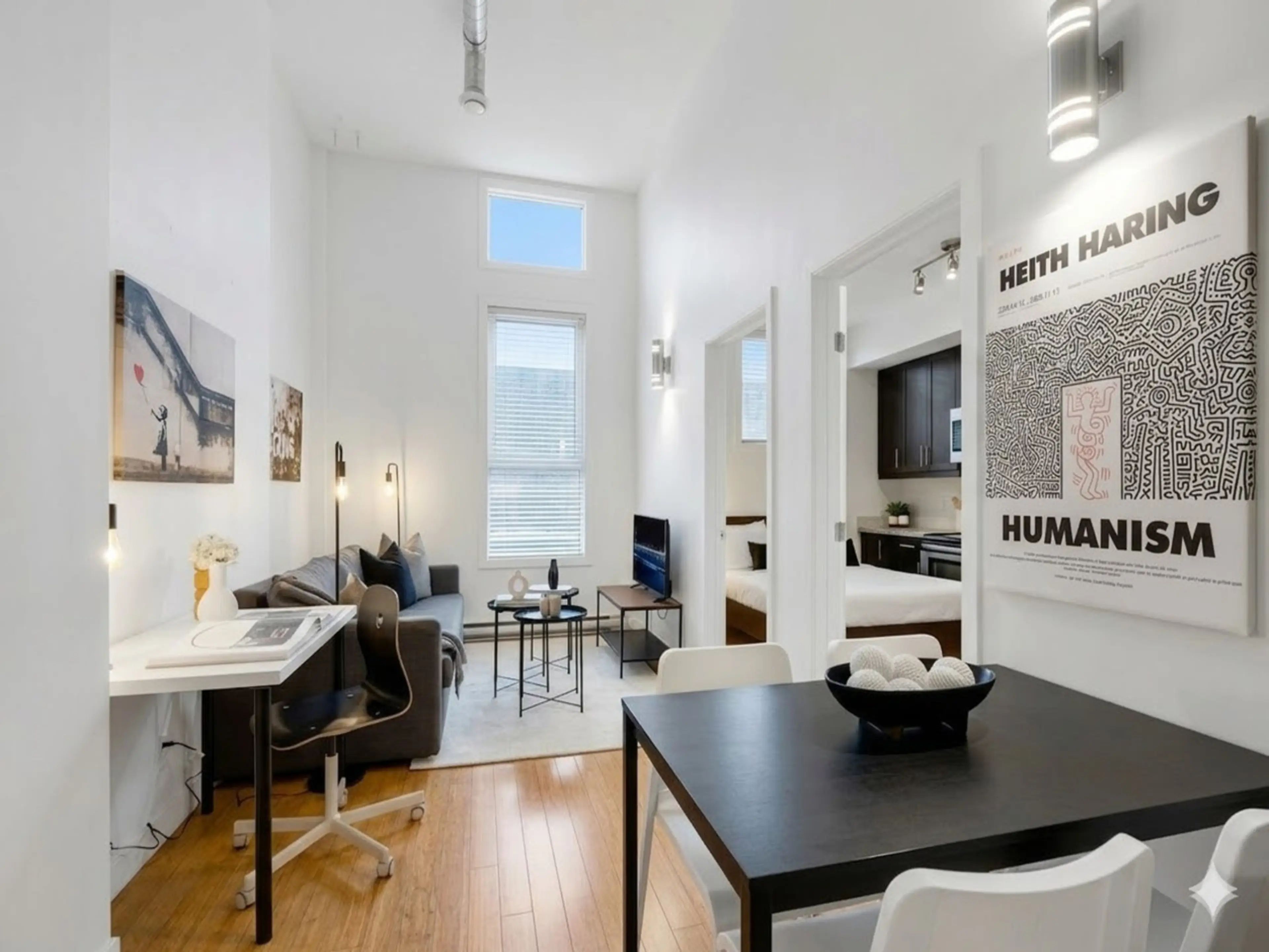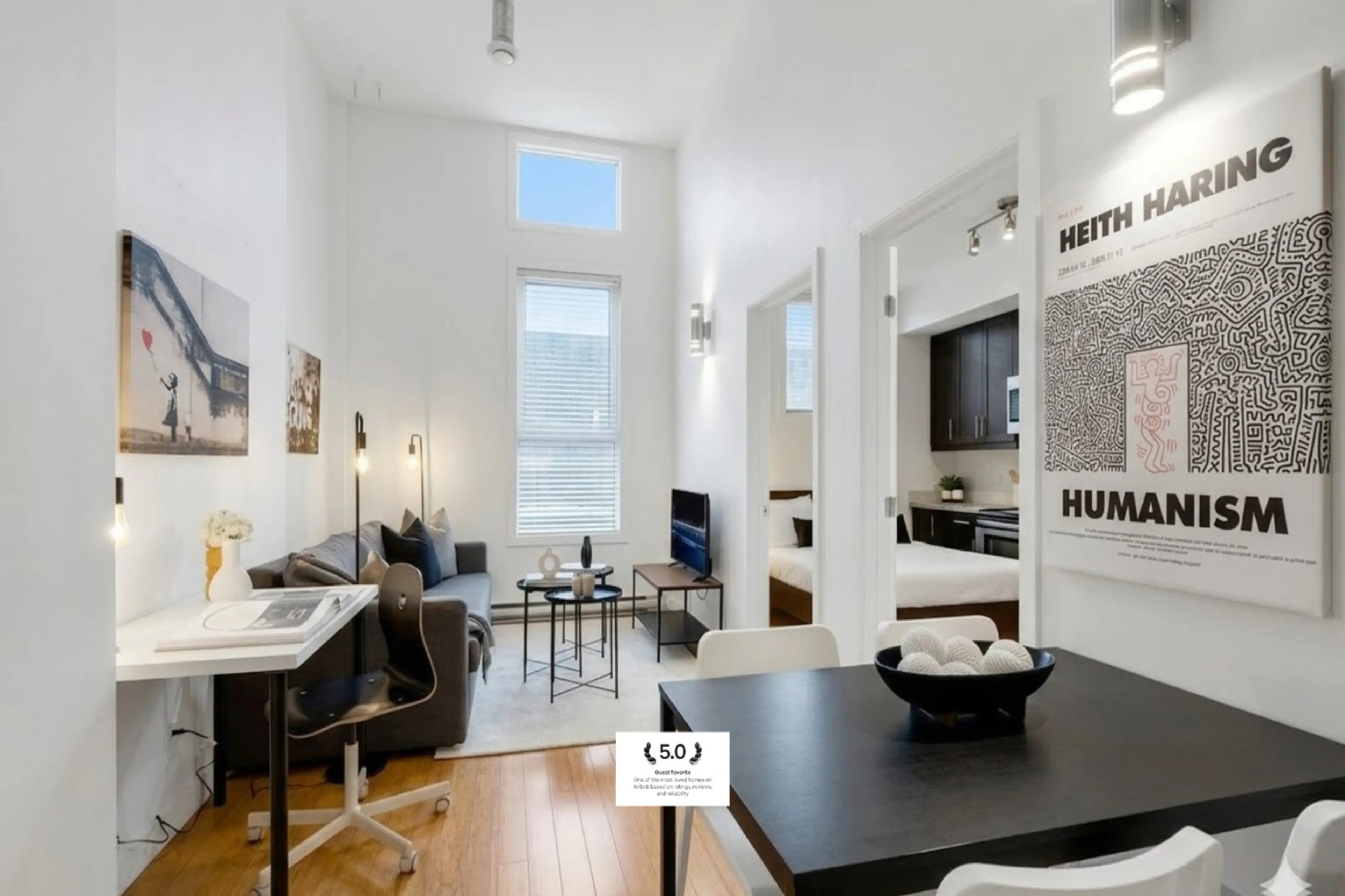 🏆 GUEST FAVORITE 🏆 Experience vibrant city life just outside your door. This spacious 2-bedroom suite, minutes from downtown Montreal, is designed for comfort and style. Ideal for families and large groups, it offers a cozy lounge, dining area, and fully equipped kitchen. Located on a lively pede...
