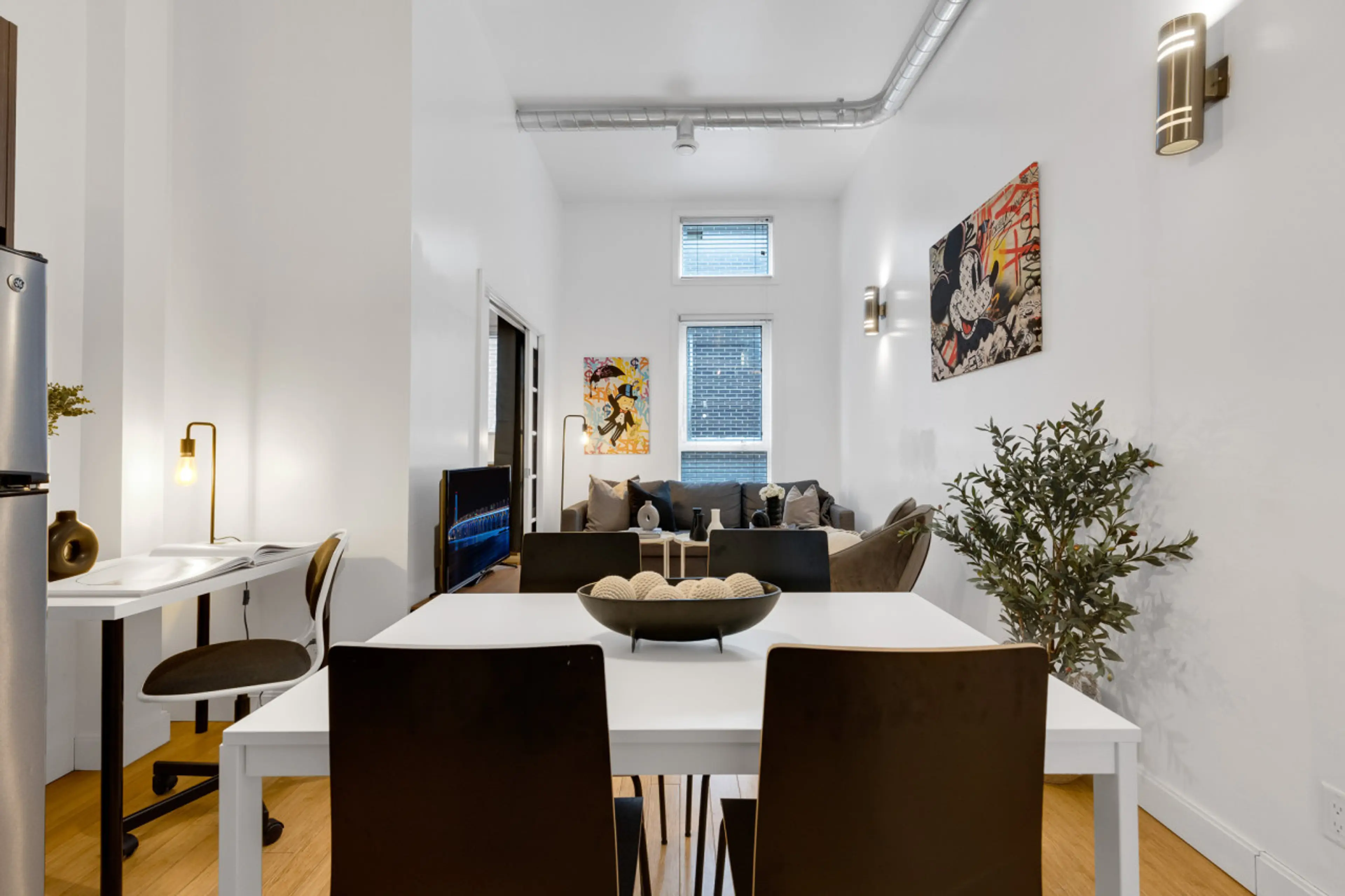 🏆 GUEST FAVORITE 🏆 Experience vibrant city life just outside your door. This spacious 1-bedroom + mezzanine suite, minutes from downtown Montreal, is designed for comfort and style. Ideal for families and big groups, it offers a cozy lounge, dining area, and fully equipped kitchen. Located on a l...