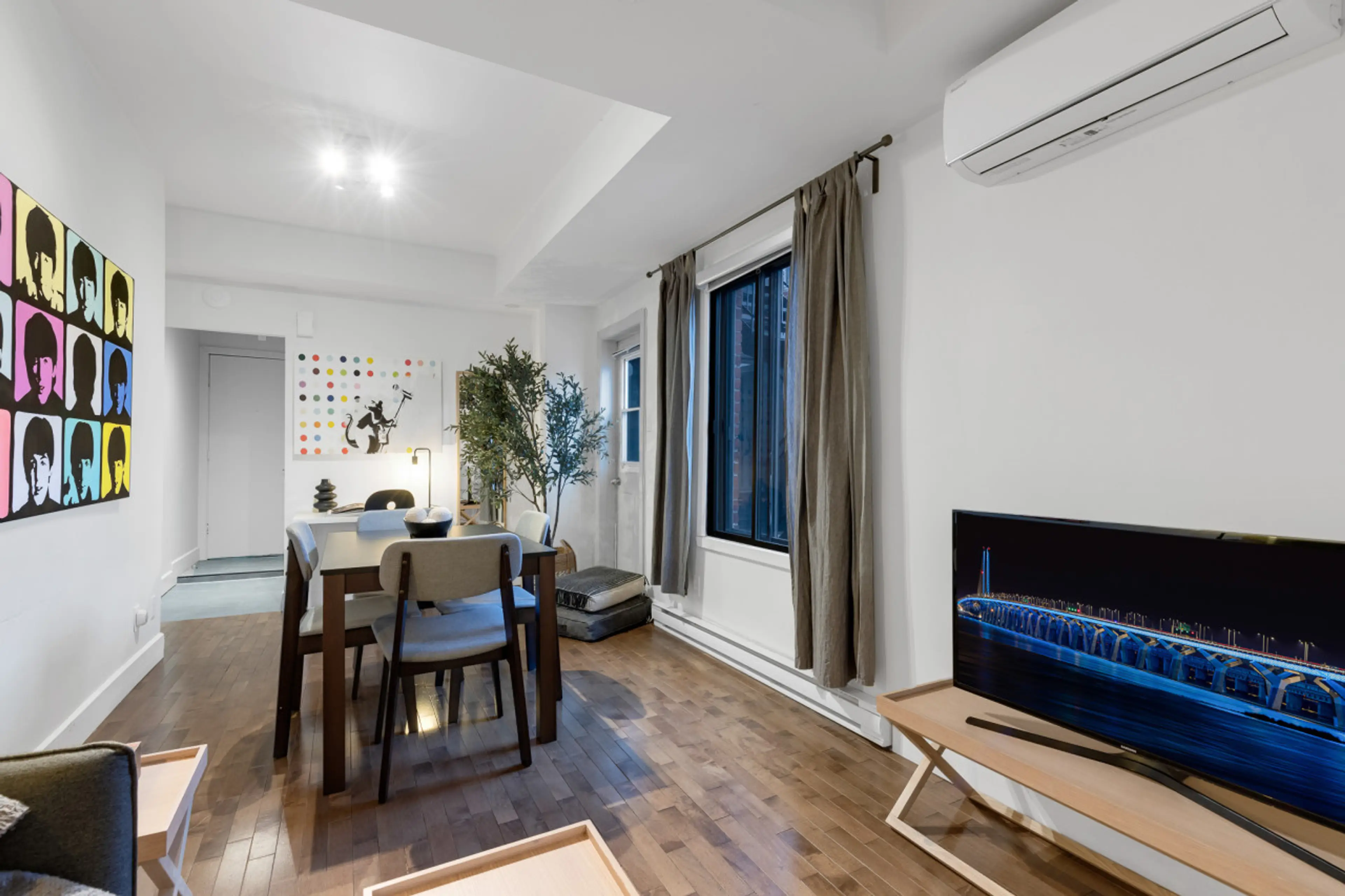 Experience Montreal like a local. Stay in this Deluxe 1-Bedroom Suite in the Plateau, just minutes from Downtown. Perfect for couples, families, or business travelers, this stylish retreat features a cozy lounge, curated artwork, Smart TV, Super-Fast WiFi, modern comforts, a full kitchen, and access...