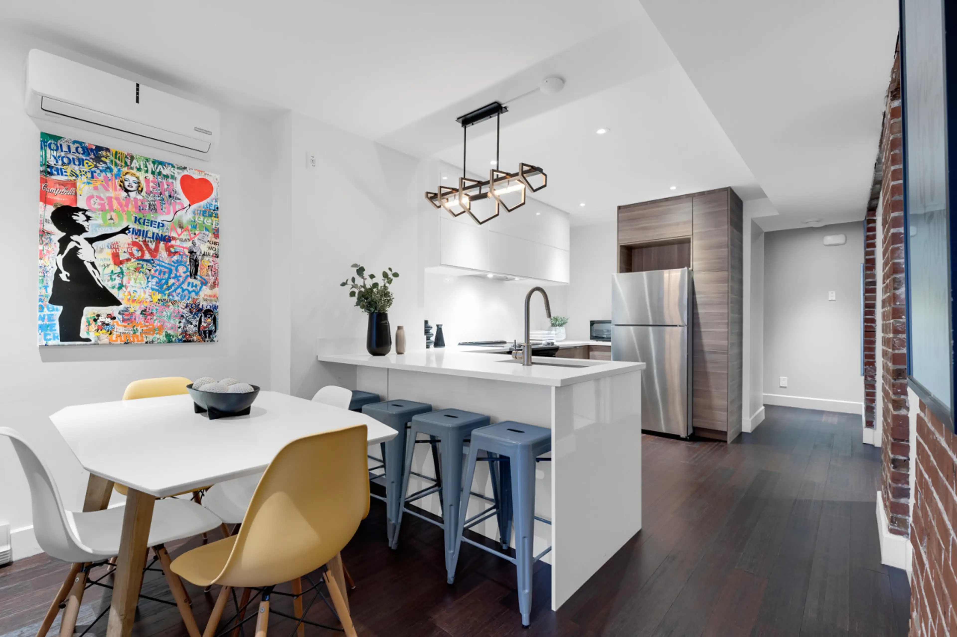 Stay in a spacious modern 1-bedroom suite in Plateau Mont-Royal, minutes from Downtown Montréal. Open layout with curated décor and a comfortable lounge—ideal for families and group stays. Shared rooftop terrace with BBQ and city views. Steps to cafés, restaurants, nightlife, shopping, and metro a...