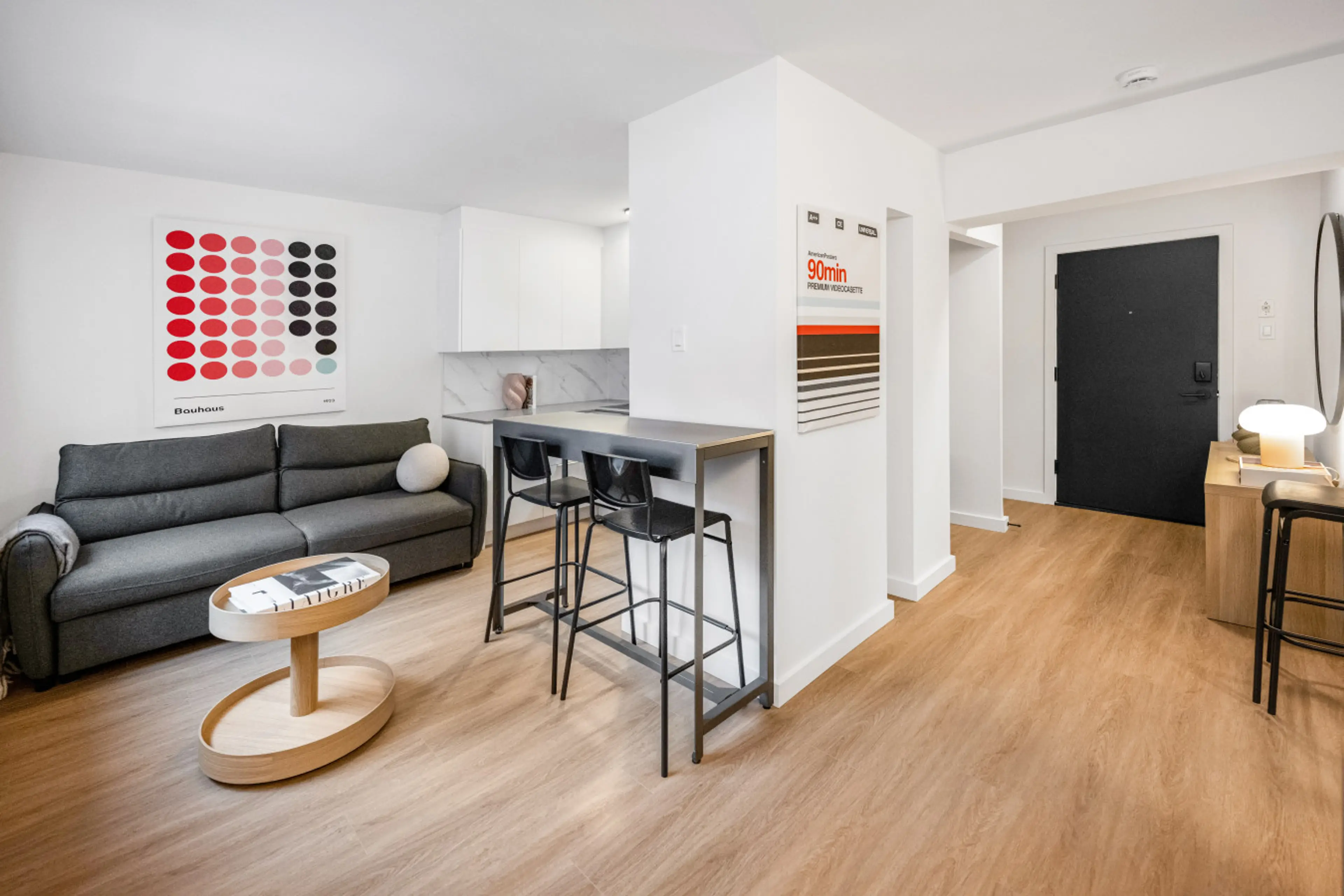 Stay in a spacious 1-bedroom suite with a separate living room and a bonus extra-comfort queen-size sofa bed. Sleeps up to 4 guests and is ideal for professionals, relocations, 31+ day visits, and long-term stays. Enjoy high-speed WiFi, Smart TV, full kitchen with cookware, A/C, plush linens, and el...